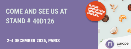December 2 to 4, 2025 We’ll be at the Food Ingredients Europe Exhibition in Paris. Come and visit us, we’ll be at Pavillon France, Hall 4, Stand 40D126 |